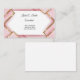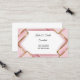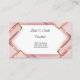 Este cartão de visita é mostrado em um padrão abstrato de tons cor rosa e dourados com texto preto.