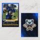 Este cartão de troca de futebol personalizável é a maneira perfeita de mostrar o espírito da sua equipe! Ele apresenta um design azul e preto ousado com uma violenta mascote vermelha de pássaros. Você pode personalizar o cartão com o nome, o número e as estatísticas do seu jogador favorito. Este cartão é excelente para colecionadores, fãs e jogadores.