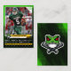 Este cartão de troca de futebol personalizável é a maneira perfeita de mostrar o espírito da sua equipe! Ele apresenta um design verde e preto ousado com uma violenta mascote vermelha de pássaros. Você pode personalizar o cartão com o nome, o número e as estatísticas do seu jogador favorito. Este cartão é excelente para colecionadores, fãs e jogadores.
