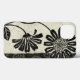 © Daphne Brissonnet / Wild Apple. Black and white image of flowers in full bloom. The image comes with a floral patterned background in black and off-white colors.