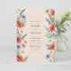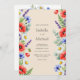 Lindos antecedentes de convites para o casamento com um pano de fundo bege macio e uma borda de flor silvestre a aquarela com papoilas, flores de milho, margaridas e folhagem delicada. Perfeito para impressão a pedido de papelaria de casamento.