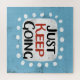 "Simplesmente Continue Indo" é um super fofo design de tipografia motivacional em azul-claro com sotaque branco.