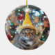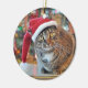 Ornamento do gato de gato malhado com chapéu do papai noel e o ano novo festivo do chapéu
