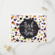 Tenha um Halloween Spooktacular com convites personalizados de Cartão-Postal- Trick ou Tratar design de Halloween Cute com Bolinhas Laranja, Verde, Roxo e Preta. Com a divertida fonte de pincel e rabiscos desenhados de mão - Feliz Dia das Bruxas!