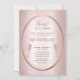 Convite para torradas de champanhe com brilho Dourado de Rosa de festa aniversário de 21 anos... Num fundo de folha metálica cor-de-rosa-pincelada, o nosso elegante convite de festas apresenta uma camada de ombro brilhante feminina e óculos de champanhe a brindar à aniversário de 21 anos. Dentro a rosa-dourada estrutura oval metálica, você encontrará um exemplo de texto que você pode facilmente revisar na modelo de personalização. A parte traseira desse convite de festas de marco também exibe o design de brilho ombre exclusivo.