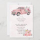 Essa técnica apresenta um caminhão-oficina cor-de-rosa rosado com um impressão floral de pedônia com uma pequena pincelada e uma abóbora rosa também com flores. Papel e bolinhas kraft. Excelente para as suas comemorações do casamento!