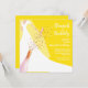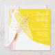 Os convites de chá de panela de Brunch e Bubble apresentam uma noiva em seu vestido e véu em um fundo amarelo brilhante com uma garrafa de champanhe, sequências de vidro e faux e seus detalhes em letras brancas chic. **DICA: O tamanho quadrado REQUER POSTAGEM EXTRA. Você pode MUDAR A COR DE FUNDO para qualquer coisa com nossas ferramentas de design, basta clicar no link Personalizar mais.