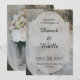 Este convite de casamento elegante apresenta uma sobreposição romântica em um fundo de foto de buquê suave e sonhador. Com uma moldura transparente moderna e uma combinação de fontes serifadas clássicas, traz um toque atemporal e refinado ao seu anúncio de casamento. Perfeito para casais que planejam uma cerimônia formal ou inspirada em jardins, este convite é facilmente personalizável com seus próprios detalhes para criar um verdadeiro souvenir pessoal.