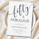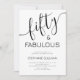 Roteiro Cinquenta e Fantástico, preto e branco, convite de aniversário de 50 anos moderno que você pode personalizar e enviar para a celebração do seu aniversário de cinquenta anos. As palavras "Cinquenta e Fantástico" são definidas usando tipografia de fonte de roteiro popular. As cores do texto podem ser alteradas usando o menu de edição.
