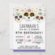Celebrar com um crânio de açúcar colorido / tema Dia de la Muerte! Possui crânios de açúcar adoráveis, com fundo de cores coordenadoras. Destaques de cor-de-rosa, azul, verde, laranja e amarelo ao longo do percurso.