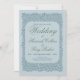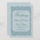 Um convite de casamento vintage personalizado elegante e sofisticado, com um quadro de rendas azul sobre um fundo castanho claro e texto azul com sombras claras, que você pode personalizar de acordo com suas necessidades. Projetado para enfatizar a elegância e a sofisticação da cerimônia, do casal e de suas famílias.