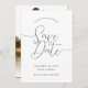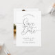 Anuncie seu dia especial com nomes personalizados do Script Casamento branco salvar a data Convite. Estes cartões espelham o design do convite para o casamento, apresentando um fundo branco, letras clássicas de serifa e nomes personalizados personalizados, definindo o tom para sua elegante celebração.