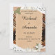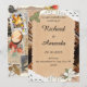 Perfeito para amantes de livros e românticos vintage, este convite de casamento rústico apresenta um charmoso design de papel rasgado sobre um fundo de lombadas de livros envelhecidos, acentuado com folhas vintage e ilustrações florais. Os tons marrons quentes e a fonte de letra elegante criam uma sensação aconchegante e literária — ideal para casamentos em bibliotecas, cerimônias de outono ou casais que compartilham o amor por histórias.