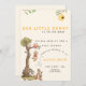 Celebre a chegada da sua "pequena caçada" com este charmoso convite de chá de fraldas! Apresentando um tema mimétrico de floresta inspirado em personagens clássicos da infância, esta design mostra uma cena lúdica com animais, uma árvore, um balão e uma colmeia de mel. Os tons quentes e os detalhes deliciosos criam uma estética doce e convidativa. O texto personalizável permite que você personalize o nome, a data, a hora e o endereço da honestidade para tornar o convite exclusivamente seu. Perfeito para os pais que adoram um tema acolhedor e inspirado na natureza.