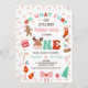 Rosa de Natal Que primeiro aniversario de Reindeer Divertido Convite Retrorativo Multicolorido Fonte oh que primeira época de Natal divertida convite para uma menina com uma rena que soletra uma. Este Natal, tema do primeiro aniversário, também apresenta um homem de pão de gengibre, árvores de Natal, estocagem de Natal, doces e muito mais. Ideal para a festa de aniversário de dezembro de uma menina.