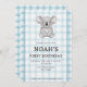 Convite 001 Sky Blue Plaid Koala 1st Birthday Invitation