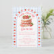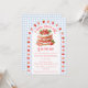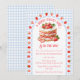 At the center of this baby shower invitation is the sweetest strawberry shortcake, framed by a scalloped border sprinkled with tiny strawberries like little kisses of summer. Set against a soft watercolor gingham backdrop, the whole design feels light, nostalgic, and delightfully fresh.