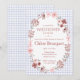 This editable shower invitation brings sweet charm with it's brushed flowers & bows on a watercolor gingham background.