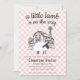 This editable baby shower invitation features an adorable lamb in front of a farm scene. The background is a soft watercolor gingham pattern.