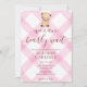 Convite 009 Fuchsia Pink Teddy Bear Gingham Baby Shower