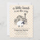 Este convite de chuveiro de bebê editável apresenta um adorável cordeiro em frente a uma cena de fazenda. O fundo é um suave padrão xadrez de aquarela.