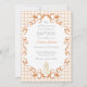 Convite 014 Latte Tan Scroll Gingham Cross Candle Baptism