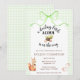 Convite 017 Moss Green Squirrel Acorn Gingham Baby Shower