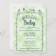Convite 017 Moss Green Watercolor Gingham Bird Baby Shower