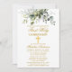 O Primeiro Convite à Comunidade Elegante Moderno inclui folhas de cor aquosa de eucalipto e outras lindas folhagens botânicas verdes. Dourada Cruz.