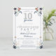 Celebre seu 10º aniversário de casamento com este convite de aniversário de casamento Cheers to 10 years. Este design apresenta um tema suave e bonito em prata e azul com sotaques florais coloridos em tons de azul e laranja. O verso do convite de aniversário de casamento tem um fundo azul escuro com lindos buquês florais em cada canto. Misture e combine com outros itens desta encantadora coleção de décimo aniversário de casamento.