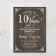 Convite de 10º Aniversário de Casamento. Elegante design rústico com padrão de madeira marrom escuro e fonte script branca. Parabéns pelos 10 anos! Pode ser personalizado para qualquer ano de casamento! Mensagem para mim se precisar de mais personalização.