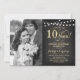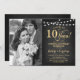 10º Convite de Aniversário de Casamento com Foto. Design elegante em ouro preto e falso. Apresenta o padrão do quadro de controle, a fonte do script e as luzes da cadeia de fadas. Saúde a 10 anos! Pode ser personalizado em qualquer ano. Envie-me uma mensagem se precisar de mais personalização.