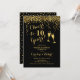 Convite de aniversário de 10 anos de casamento. Parabéns a 10 Anos! Design elegante em preto e dourado. Características taças de champanhe, fonte de letra manuscrita e confetes. Perfeito para uma celebração estilosa de 10 anos de casamento. Convites Zazzle impressos ou modelo digital para download instantâneo. Pode ser personalizado para mostrar qualquer ano! Personalize com seus próprios detalhes.