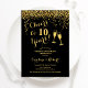 Convite de 10º aniversário de casamento. Parabéns por 10 Anos! Design elegante em preto e dourado. Apresenta taças de champanhe, fonte de texto e confetes. Perfeito para uma celebração estilosa de 10 anos de casamento. Convites Zazzle impressos ou modelo digital para download instantâneo. Pode ser personalizado para mostrar qualquer ano! Personalize com seus próprios detalhes.