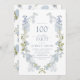 Convite 100º Floral Azul Elegante Festa de aniversário