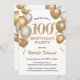 100º Aniversário, Balões Brancos e Dourados, Aniversário de Aniversário. Para mais personalização, clique no botão "Personalizar" e use nossa ferramenta de design para modificar este modelo.