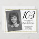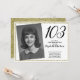 Este convite de aniversário de 103 anos branco e dourado para ela inclui uma foto personalizável com uma textura de papel de aquarela falsa e definirá um tom divertido e comemorativo. Nota: A borda de folha é impressa e não é folha brilhante real!