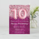 10º Aniversário Convite Girly Magenta e Rosa Glitter 10º convite de aniversário para uma garota de 10 anos com escrevendo moderno de escrita e balões de folha divertida.