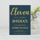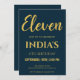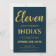 Convite de Aniversário do 11 de Script Azul e Dourado do marinho