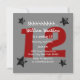 ADOLESCENTE 12 Surpresa Aniversário Carvões Grunge C12 com estrelas. Este moderno design preto, cinza e vermelho com as suas explodidas estrelas de granizo é uma forma divertida, mas elegante de convidar as pessoas para uma celebração da festa de aniversário SURPRISE de 12 anos. Você pode experimentar diferentes tipos de papel clicando na guia "Opções de convite" no canto superior direito. Eu recomendo o papel metálico calado que dá ao seu convite de aniversário um shimmer festivo e brilhar. Adorável!