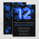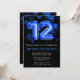 12 balões de aniversário crianças convite de aniversário de 12 azul para um garoto de 12 anos com moderno roteiro escrevendo e balões de folha azul divertidos.