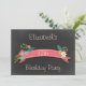 Convite 12 Birthday Pink Banner Flowers Chalkboard