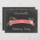 Modelo de convite de festa de aniversário elegante, personalizado, para 12, para raparigas com belas ilustrações de vetor cor-de-rosa banners decorados com flores coloridas, bonitinhas, de estilo vintage e folhas num fundo de quadro negro tendencioso. Na moda, clássico, chico, glamouroso, moderno, contemporâneo, floral, convites de celebração de festas de aniversário para crianças de doze anos. Estes sofisticados, femininos, bonito, modernos convites para comemorações de festas para crianças aniversários são decorados em ambos os lados / têm impressão frente e verso duplo / são impressos frente e verso. Todo o texto na frente e no verso é totalmente personalizável/personalizável para atender às suas necessidades. Se precisar de ajuda para personalizar seu produto, entre em contato comigo através da minha loja e eu ficarei feliz em ajudar. NOTE: Todos os produtos do Zazzle possuem imagens impressas em formato plano.