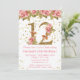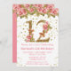 Convite de aniversário Floral de Roses Rosa para uma menina de 12 anos com escrevendo moderno de escrita e brilho dourado.