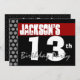Este design moderno vermelho, do branco e do preto é uma maneira do divertimento de convidar povos a uma 13a celebração do aniversário. Todo o texto é totalmente customizável. Você pode experimentar com os tipos de papel diferentes clicando do "na aba das opções convite" no canto de righthand superior. Eu recomendo o papel metálico hued do gelo que dá a seu convite do aniversário um shimmer e um brilho festivos. Bonito!