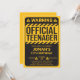 Celebrate the leap into the teen years with this “Warning: Official Teenager” 13th birthday invitation. Created especially for a 13-year-old boy, it features bright colors and bold visuals that make it stand out. Fun and lighthearted, this invitation sets the tone for an exciting tween-to-teen birthday party and is sure to make your guests smile.