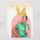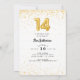 Um belo confete de ouro e convite de aniversário de 14 de fotos de arco para sua décima quarta festa de aniversário. Personalize com fotos na frente e detalhes da festa na parte traseira.