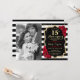 Design elegante em vermelho e preto com dourado brilhante falso. Apresenta listras pretas e brancas, fonte manuscrita, rosas vermelhas e confetes. Pode ser personalizado para qualquer ano! Mensagem para mim se precisar de mais personalização.