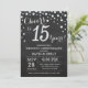 15º Aniversário de Casamento Convite Quadro Negro Preto e Prata. Décimo Quinto Aniversário de Casamento. Fundo de Diamante Brilhante Preto e Prata. Confetes Prateados. Aniversário de Adulto. Festa de Aniversário Feminino ou Masculino. Para personalização adicional, clique no botão "Personalizar" e use nossa ferramenta de design para modificar este modelo.