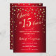 Design elegante com vermelho profundo, preto e dourado falso. Saúde por 15 Anos! Perfeito para uma festa elegante.